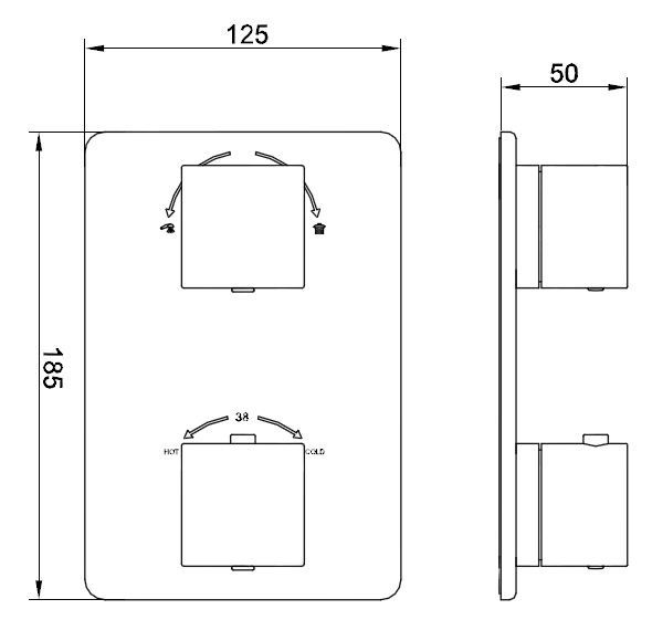 Afbouwdeel voor het inbouwdeel douchethermostaat. (apart te bestellen), bestaande uit thermostaatknop, omstelknop(pen) en bodemplaat.