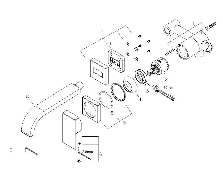 Wiesbaden Rombo inbouw-wastafelmengkraan ��nhendel chroom