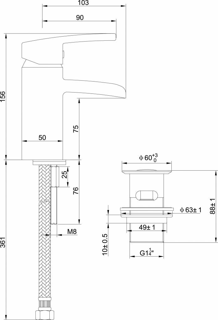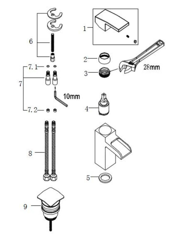 Rombo waterval-wastafelkraan chroom, inclusief vierkante luxe klikwaste 5/4",