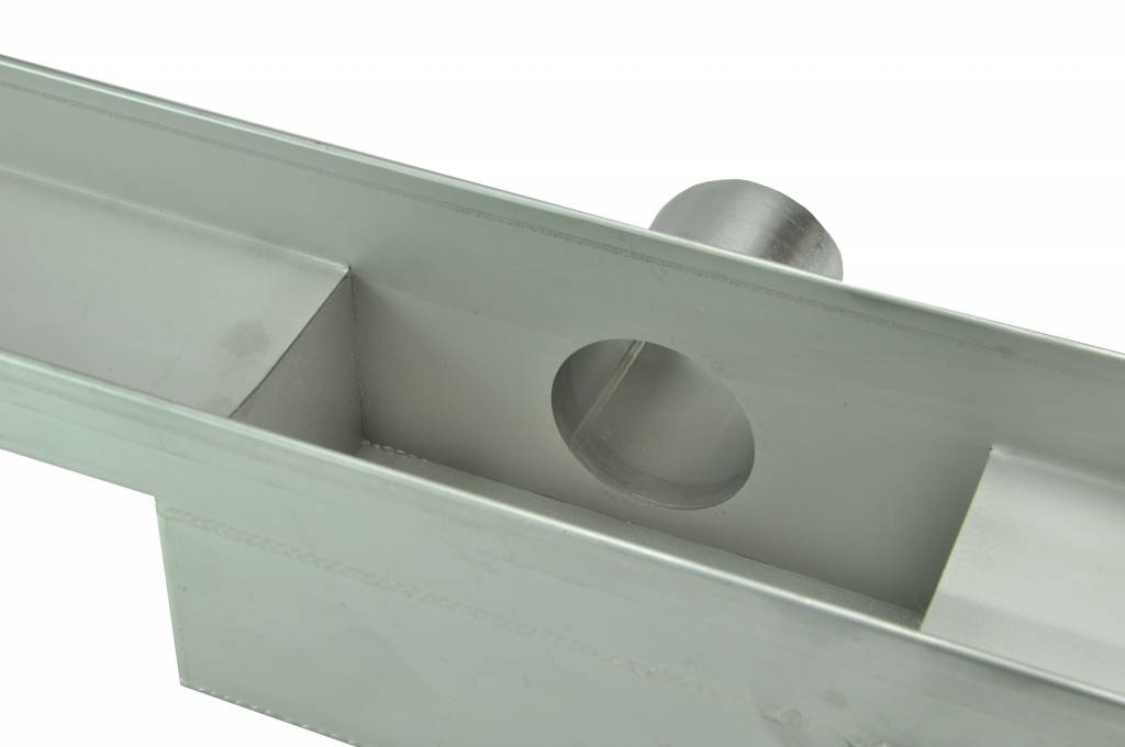 RVS 3e GENERATIE douchegoot (inclusief RVS rooster) 40mm zij-aansluiting met uitneembaar waterslot inclusief verloopmof 40/50mm Mooi afgewerkte randen 80cm lang 7cm breed 6,7cm inbouwdiepte voorzien van een uitneembaar haarfilter