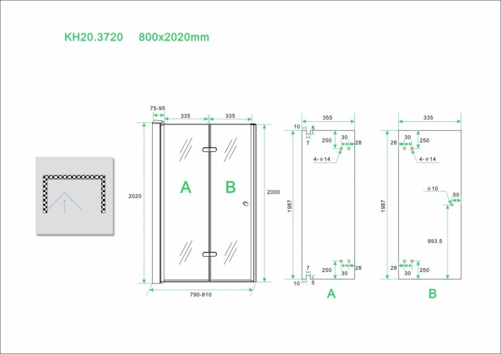 Wiesbaden vouwbare nisdeur 800x2020 links 8mm NANO glas