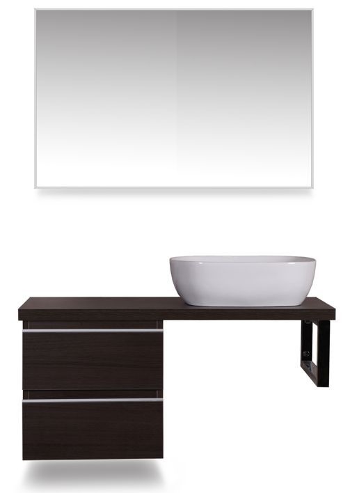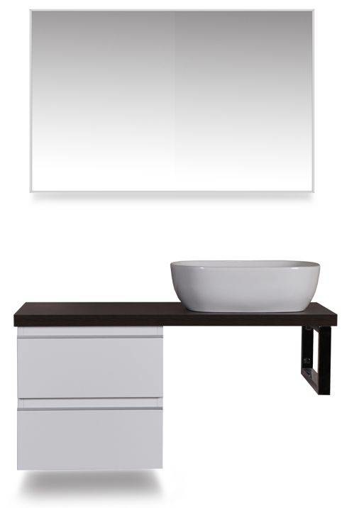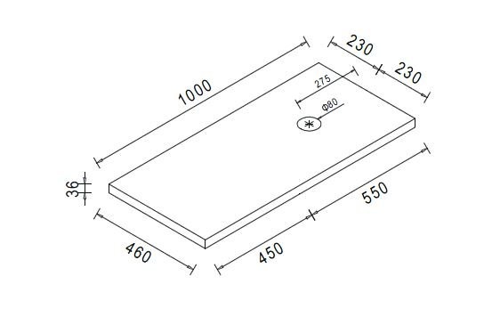 wastafelblad, 1000 x 460 x 36, voor 1 wastafel, houtnerf grijs, Dit blad combineren met een ladekast en een vierkante beugel, wastafel zowel links als rechts te plaatsen, Eventueel kraangat zelf aan te brengen,