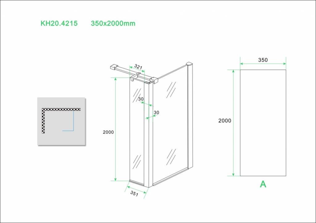 Wiesbaden zijwand+hoekprof. 350x2000 10mm NANO voll.matglas