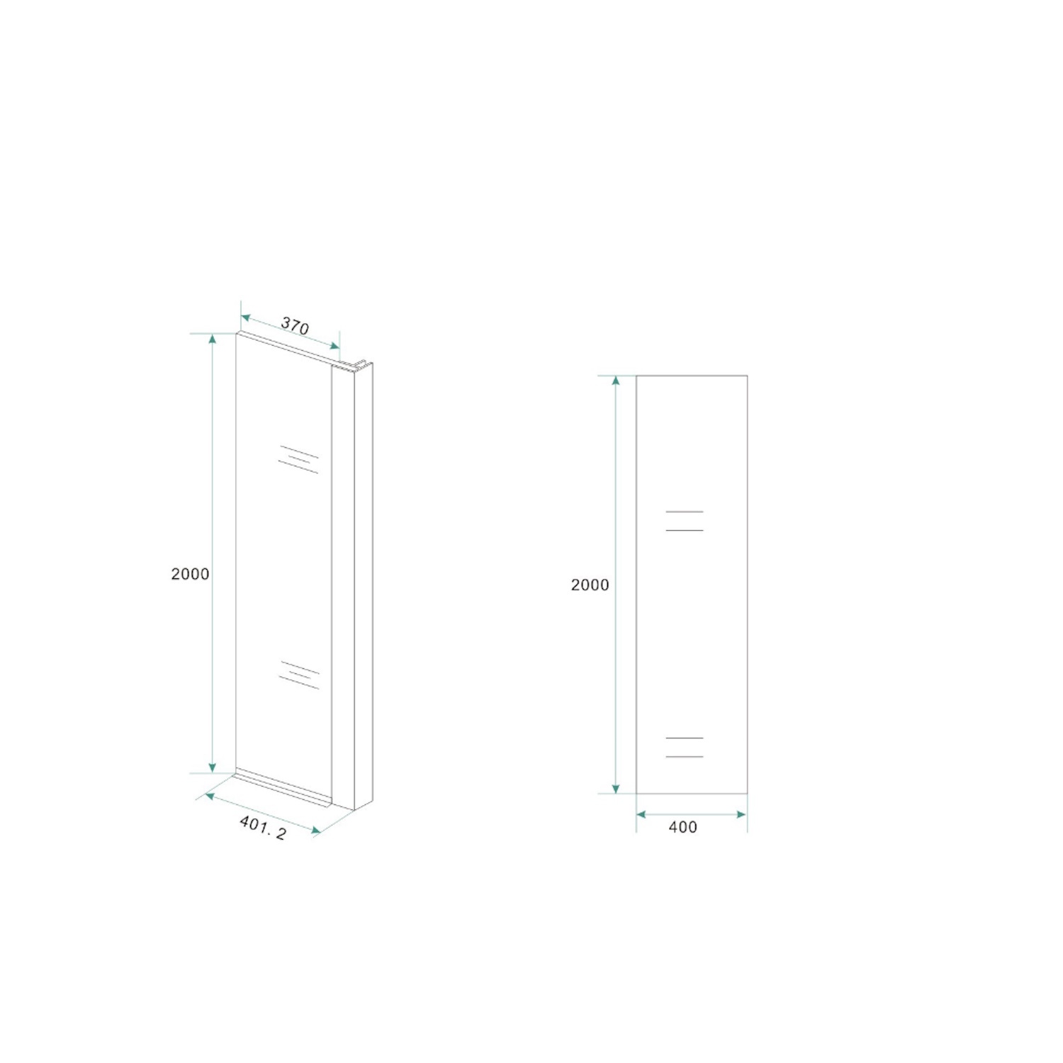 Zijwand+hoekprofiel 400x2000 10mm NANO glas.
