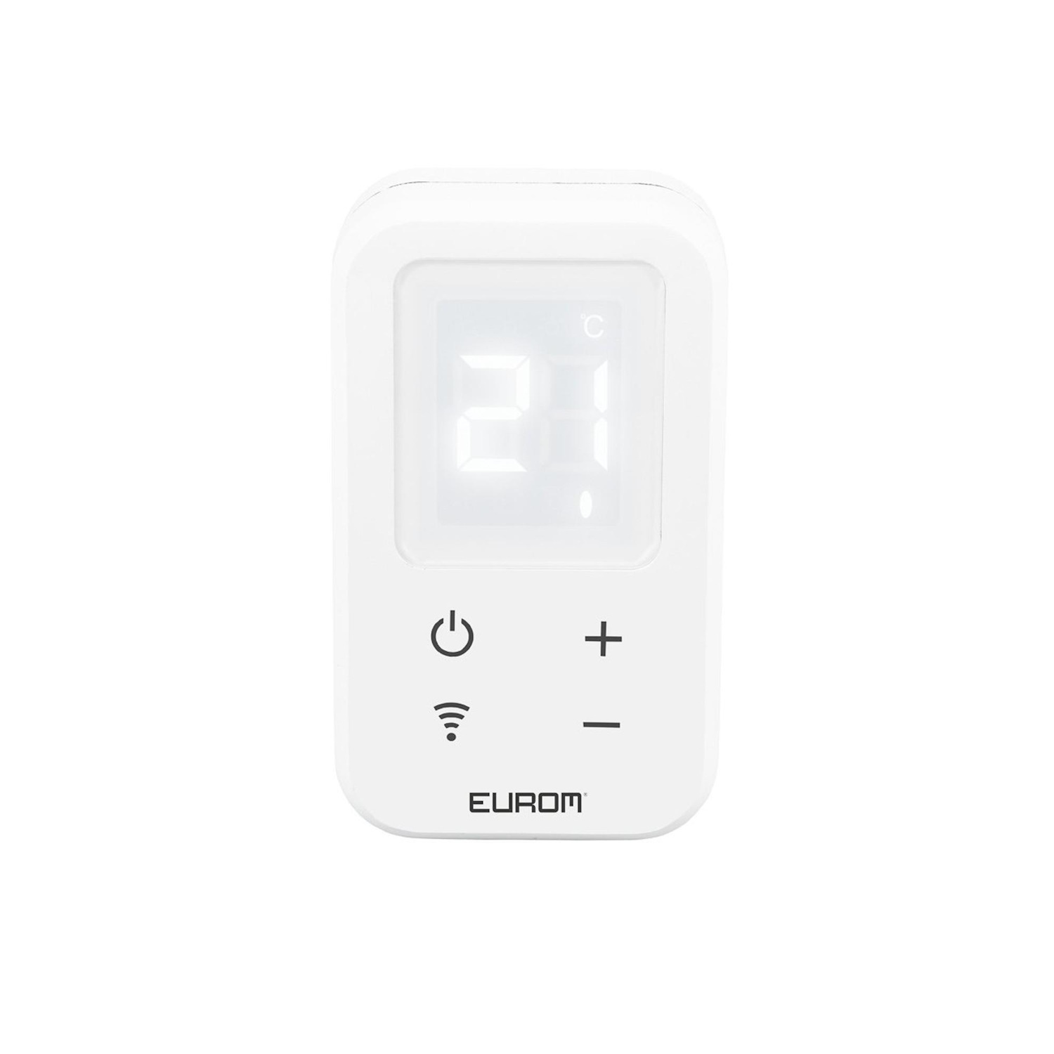 Met deze intelligente thermostaat van Eurom kunt u meerdere verwarmingen tegelijk bedienen, allemaal vanuit één centraal meetpunt in de ruimte. Door de verwarmingen te koppelen via de Wifi thermostaat, kunnen ze optimaal samenwerken om de gewenste temperatuur te bereiken. De thermostaat is compact van formaat 8x6,5x1 cm en kan eenvoudig worden aangesloten door hem in te pluggen in het stopcontact en bediend worden via het paneel of de handige smart app. Maak uw huis comfortabel en energiezuinig met deze slimme thermostaat