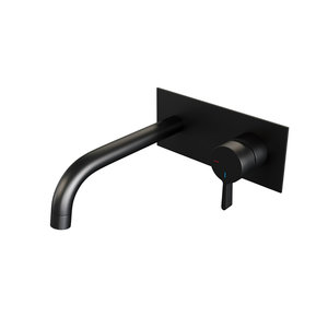 Inbouw Wastafelmengkraan Brauer Black Edition Coldstart Gebogen Uitloop Korte Platte Hendel Rechts Mat Zwart Met Afdekplaat