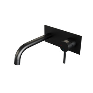 Inbouw Wastafelmengkraan Brauer Black Edition Coldstart Gebogen Uitloop Korte Ronde Hendel Rechts Mat Zwart Met Afdekplaat