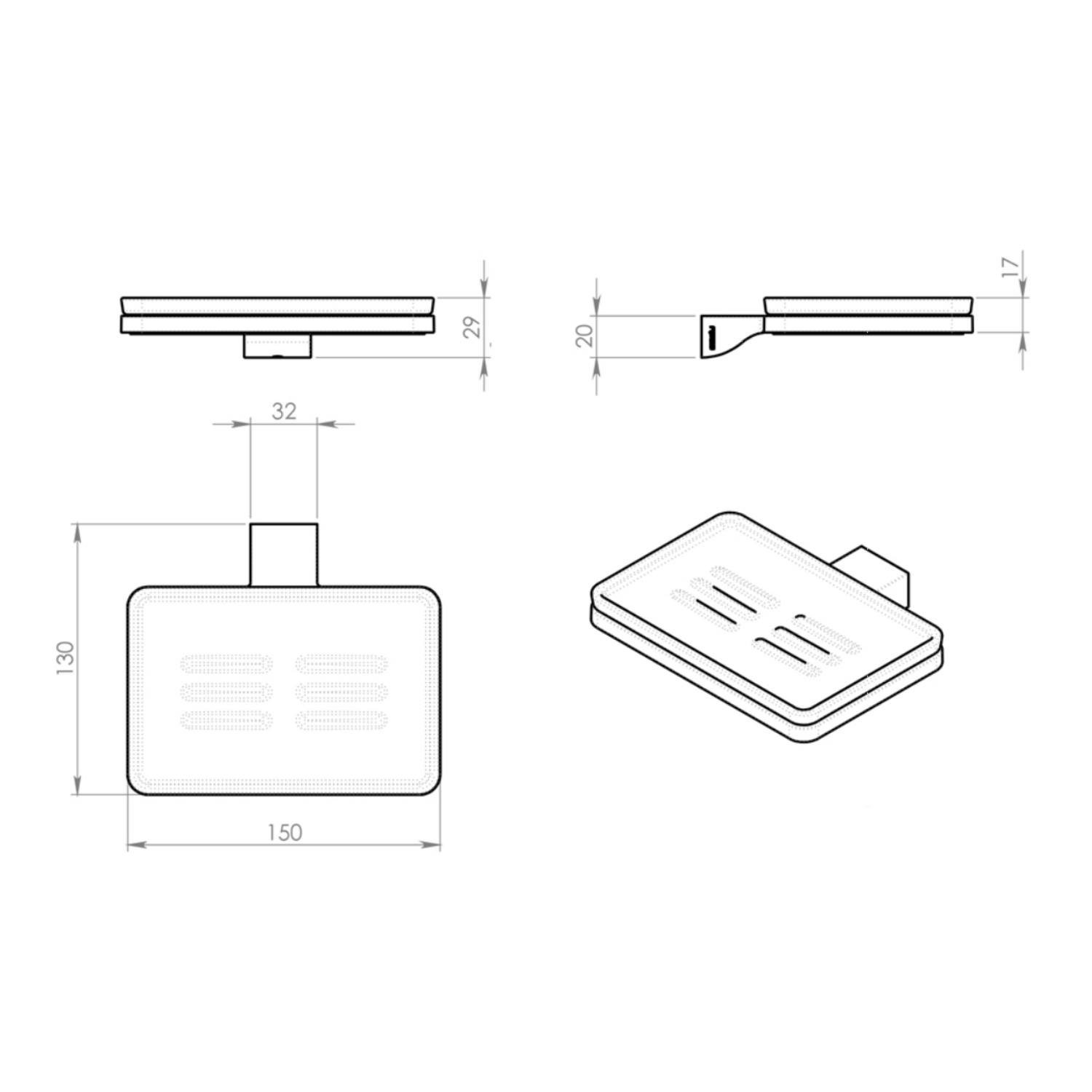 Zeephouder Sapho Glamour Hangend 15x2.9 cm Chroom / Melkglas