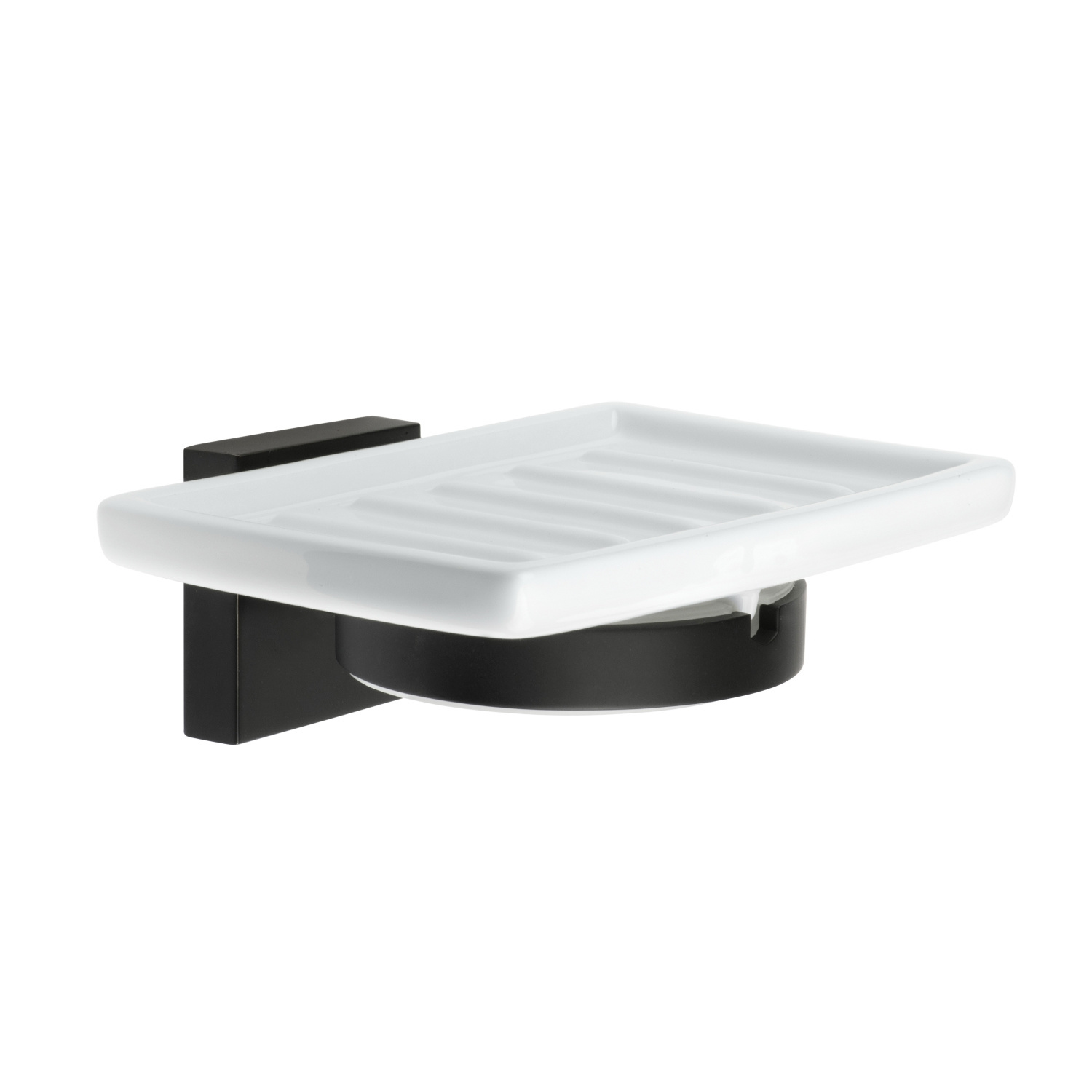 De combinatie van mat zwart en witte porselein glas maakt deze zeephouder een tijdloos item voor aan de wand. Dit product kan worden bevestigd met bijgeleverde schroeven of u kunt kiezen voor een montagelijm oplossing (niet bijgeleverd).