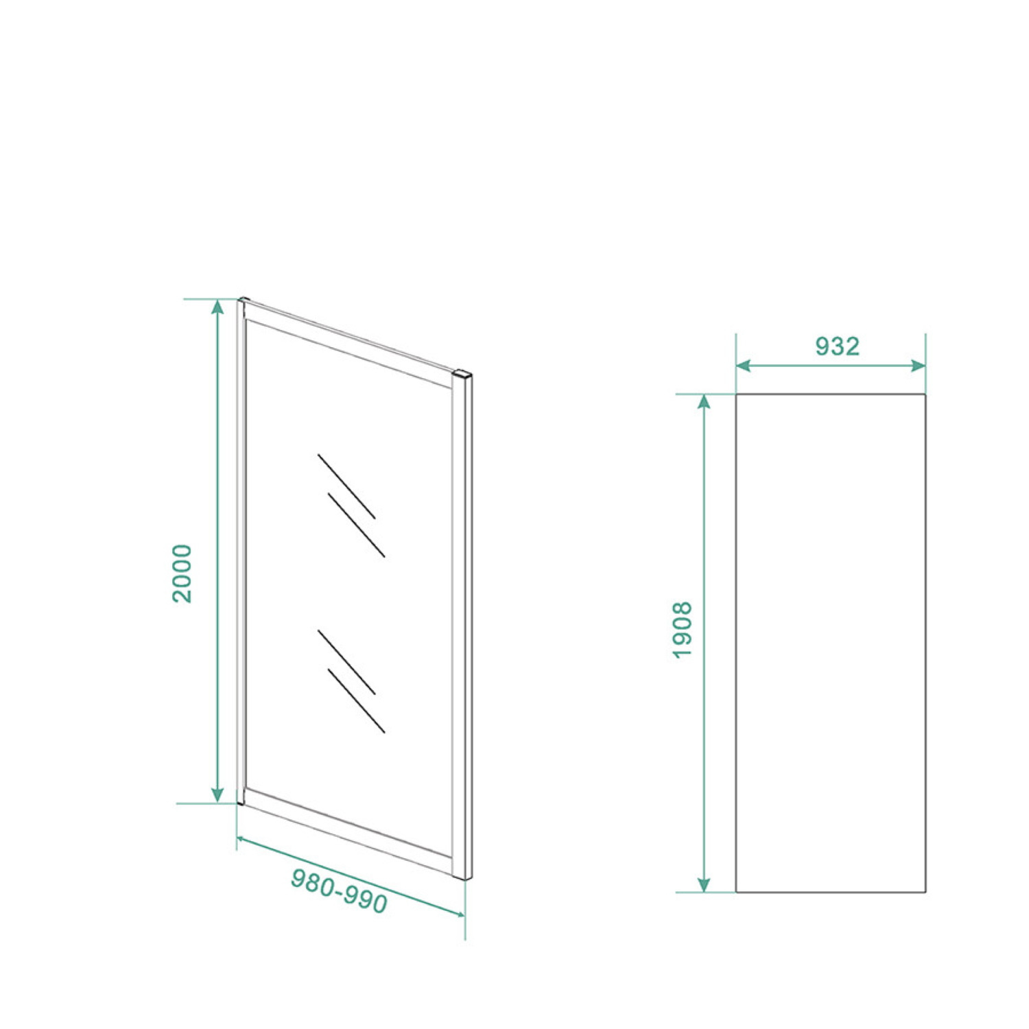 De Boss & Wessing zijwand is 100 cm breed, 200 cm hoog en heeft een glasdikte van 8 mm. De zijwand beschikt over veiligheidsglas met Nano coating. De inbouwbreedte van het glas is 98 - 99 cm. Het profiel is gemaakt van aluminium.