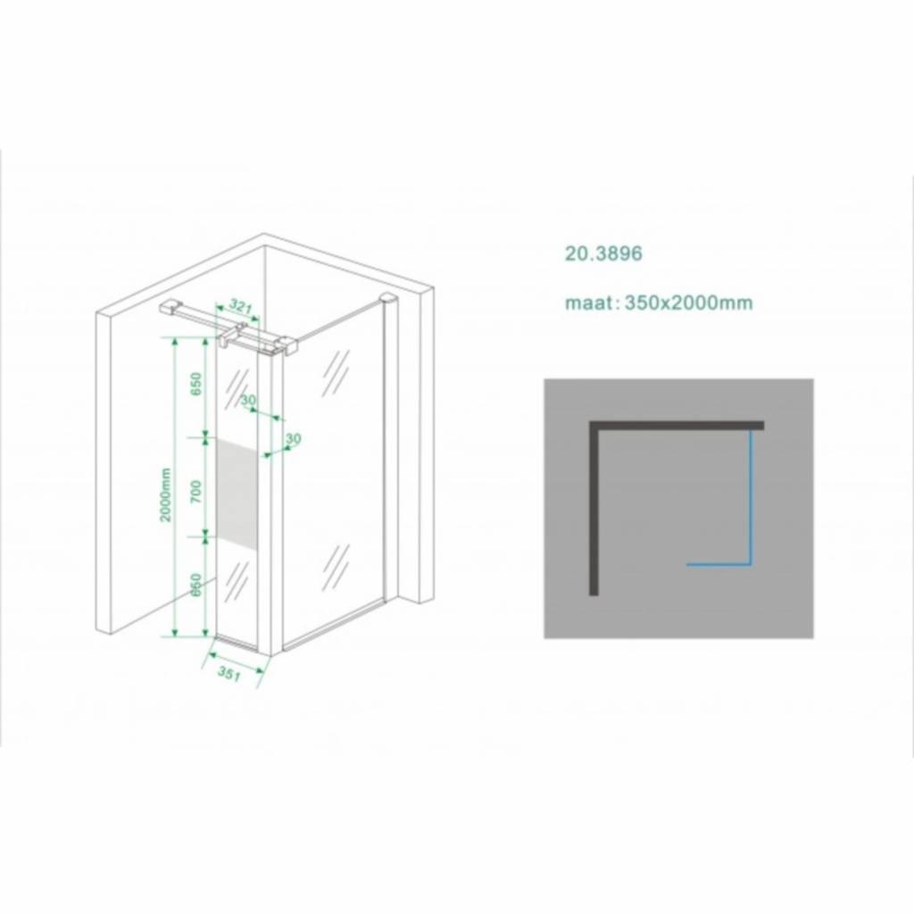 De Nano douchewand 35cm met hoekprofiel is de ideale strakke en moderne inloopdouche voor uw badkamer, welke u haaks kunt plaatsen op een 10mm douchewand.
